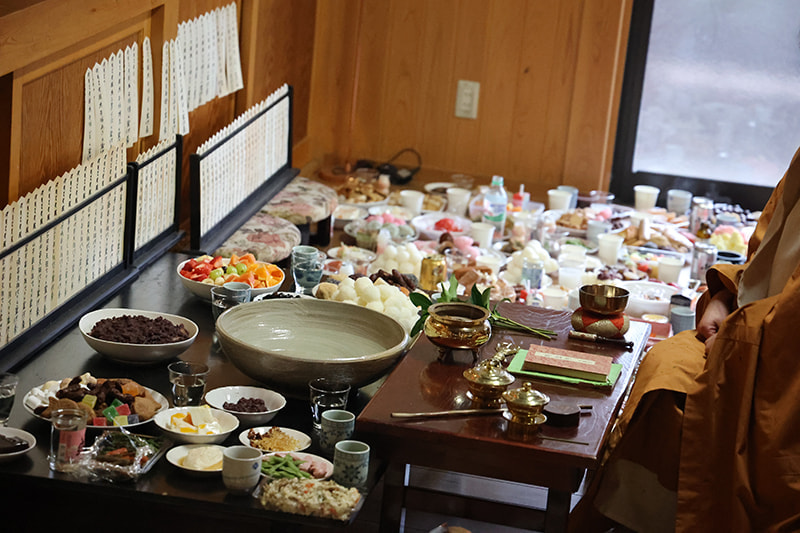 波切不動寺のお塔婆は、裏も表も手書きをしています。二座式供養をお申し込みの方々の水塔婆も手書きです。百味のお供えを用意し、先祖さまに心づくしのおもてなしをしました。